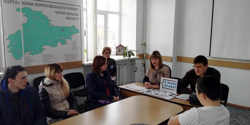 22 лютого 2018 року в рамках загальнонаціонального правопросвітницького проекту «Я МАЮ ПРАВО!» відбувся просвітницький захід для відвідувачів Корюківського районного центру зайнятості. На захід були запрошені працівники районних відділів державної реєстрації актів цивільного стану та державної виконавчої служби.