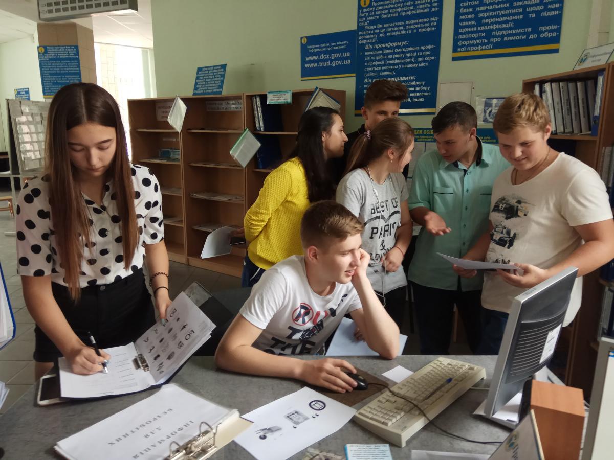 4 травня в Прилуцькій міськрайонній філії Чернігівського обласного центру зайнятості для учнів 9 класу Прилуцької гімназії №5 ім. В.А. Затолокіна проведено профорієнтаційний квест «Пізнай світ професій».