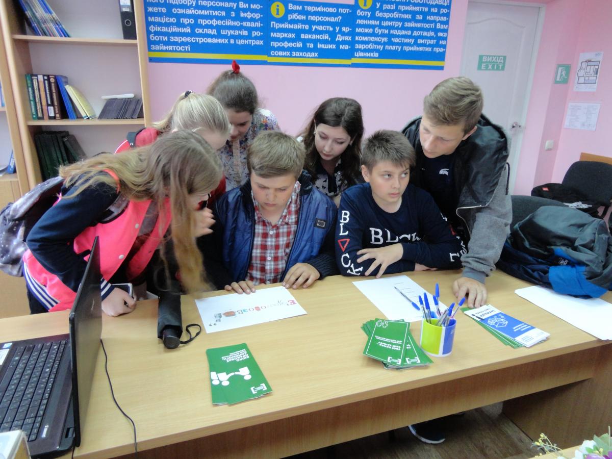 Для цього школярам довелося розгадувати профорієнтаційні ребуси та філворди, в яких зашифровано назви професій, переглянути відеоролики та ознайомитися з описами професій, базою вакансій та рівнем оплати праці за ними. У ході гри учні самостійно шукали предмети, які асоціюються з тією чи іншою професією, вакансії з найвищим рівнем заробітної плати тощо. Насамкінець вони пройшли комп’ютерне проофдіагностичне тестування на предмет професійної спрямованості.