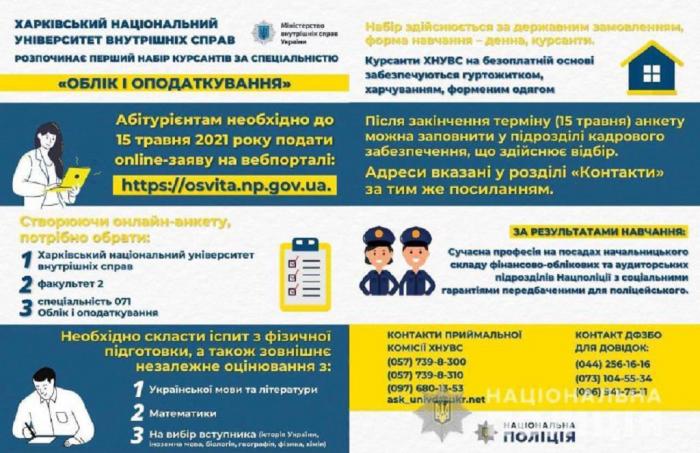 У Харківському національному університеті внутрішніх справ триває набір курсантів за спеціальністю «Облік і оподаткування».