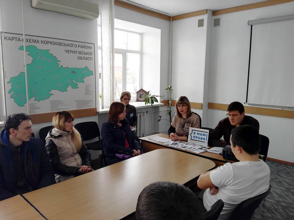 22 лютого 2018 року в рамках загальнонаціонального правопросвітницького проекту «Я МАЮ ПРАВО!» відбувся просвітницький захід для відвідувачів Корюківського районного центру зайнятості. На захід були запрошені працівники районних відділів державної реєстрації актів цивільного стану та державної виконавчої служби.