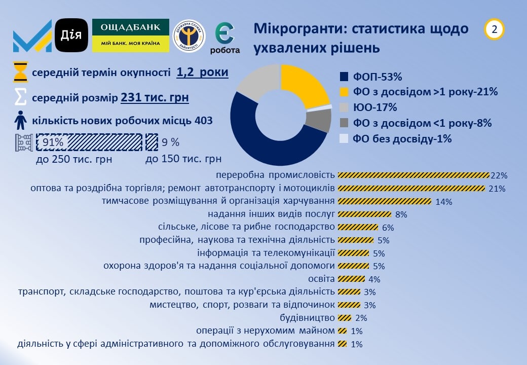 У рамках реалізації державної програми “єРобота” щодо отримання мікрогранту на створення або розвиток бізнесу позитивне рішення прийнято по 154 заявниках.